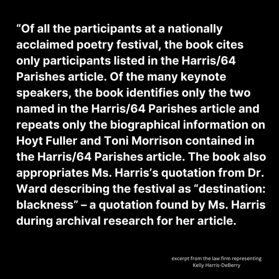 One of the most frustrating things about all of this is that I wrote something three years prior to Black Women Writers of Louisiana: Telling Their Stories. Although I have clear proof and legal representation, the burden has been on me to prove it—to prove my work and my worth but the facts are clear.
